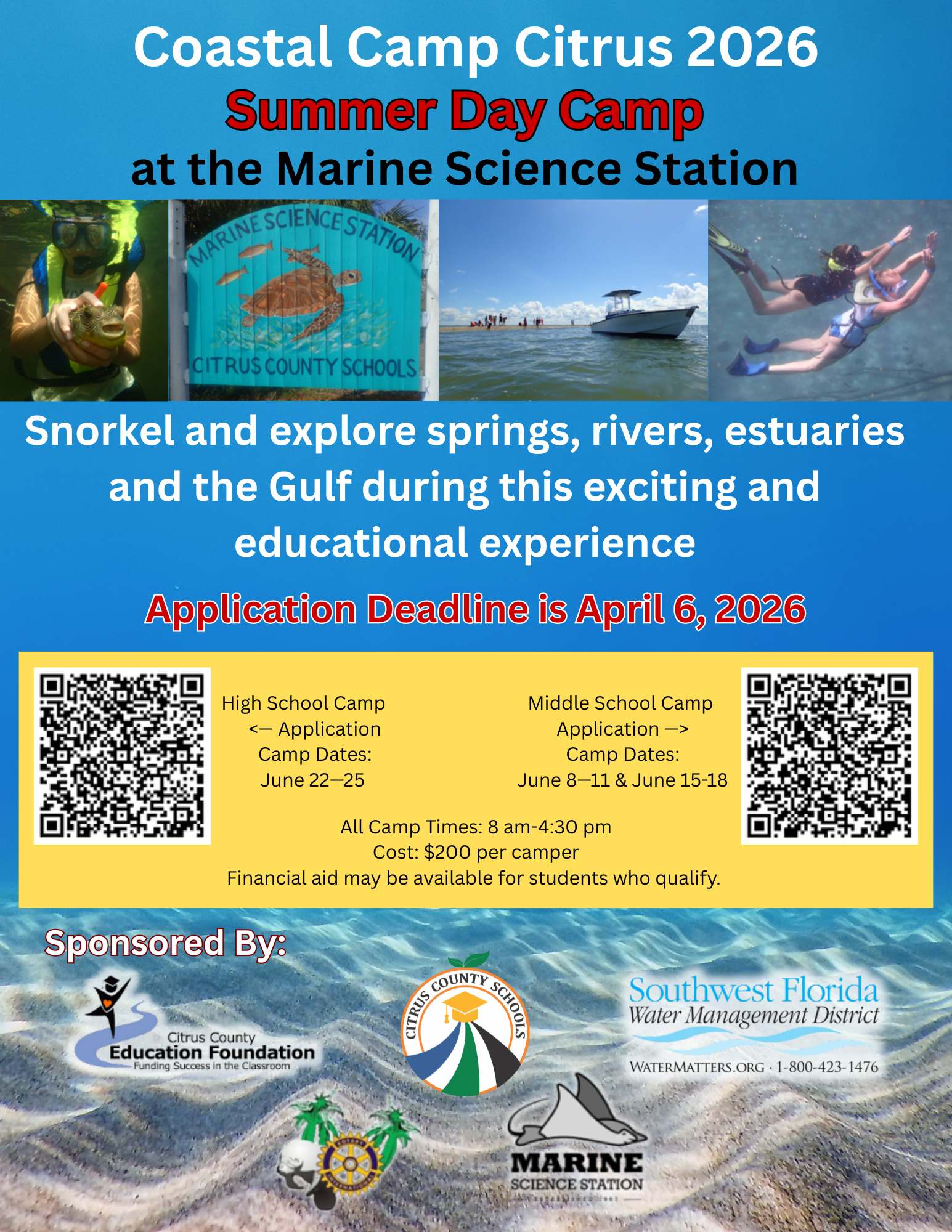 We are very happy to announce that Coastal Camp Citrus 2026 day camp applications are now available! For students who will have completed 6th or 7th grade by the end of the 25-26 school year, click...